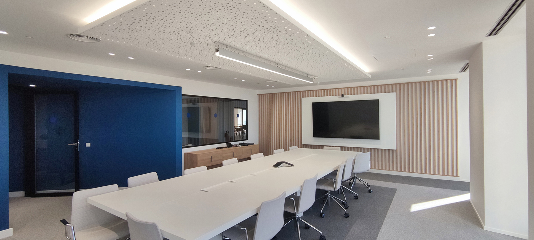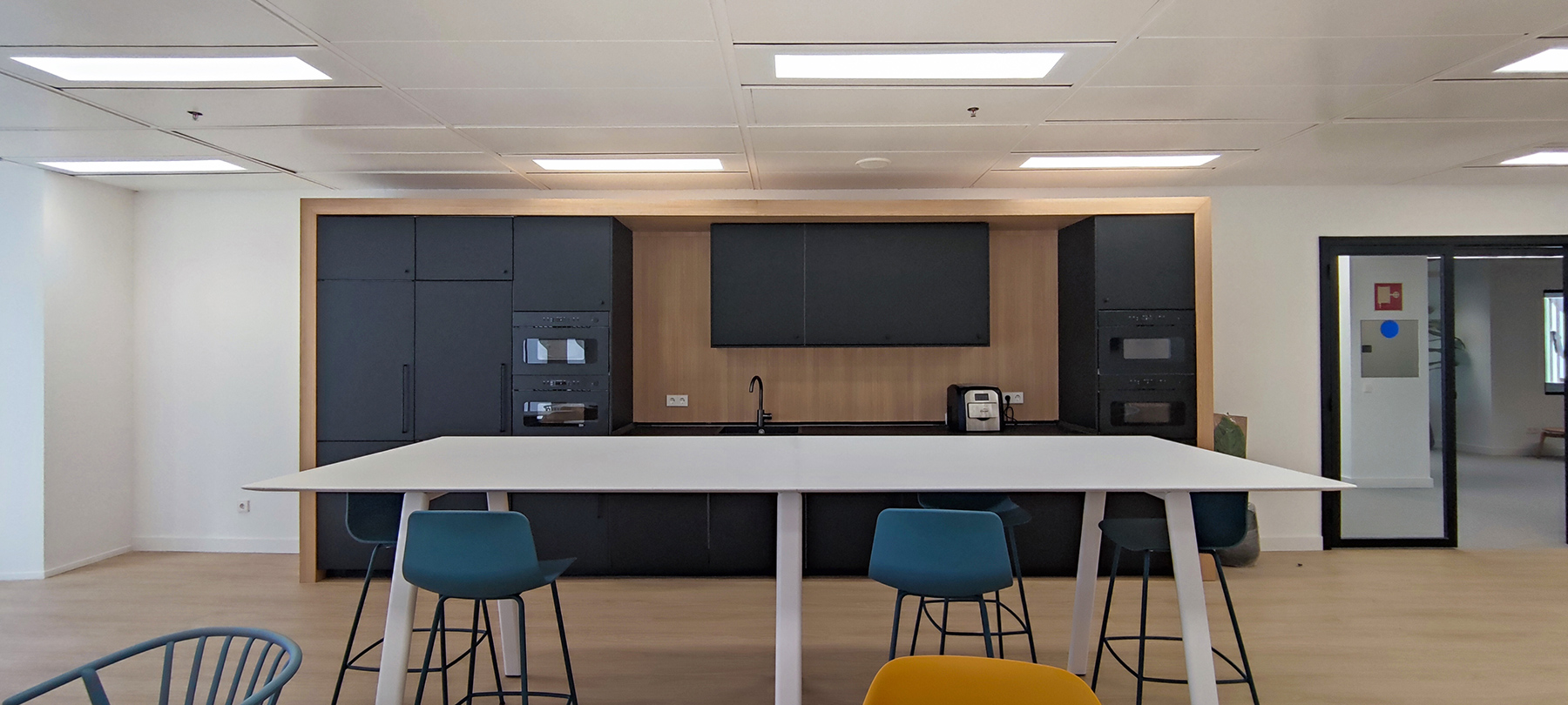 En este proyecto se ha diseñado desde los diferentes espacios de la oficina, hasta el mobiliario para atender a los requisitos que nos planteaban.